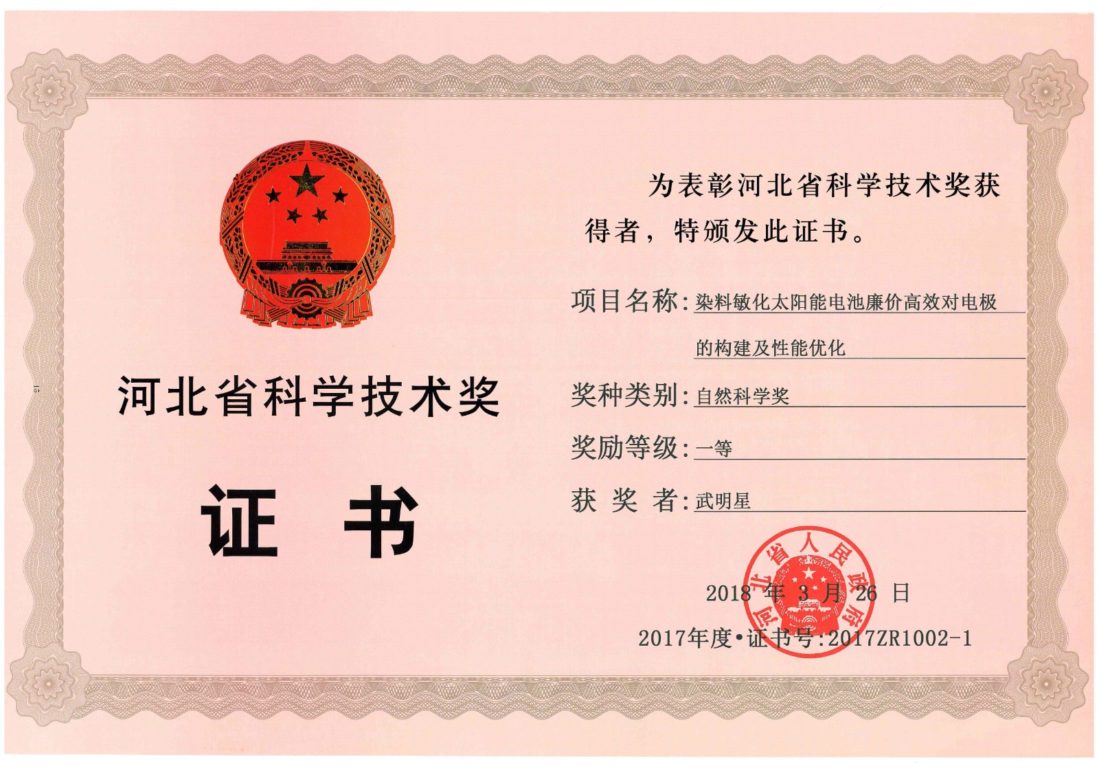 EBpay官网 武明星教授团队科研成果荣获河北省自然科学一等奖