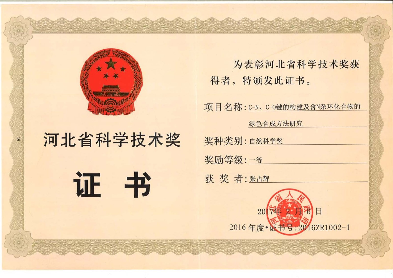 EBpay官网 张占辉研究员团队研究成果荣获河北省自然科学一等奖