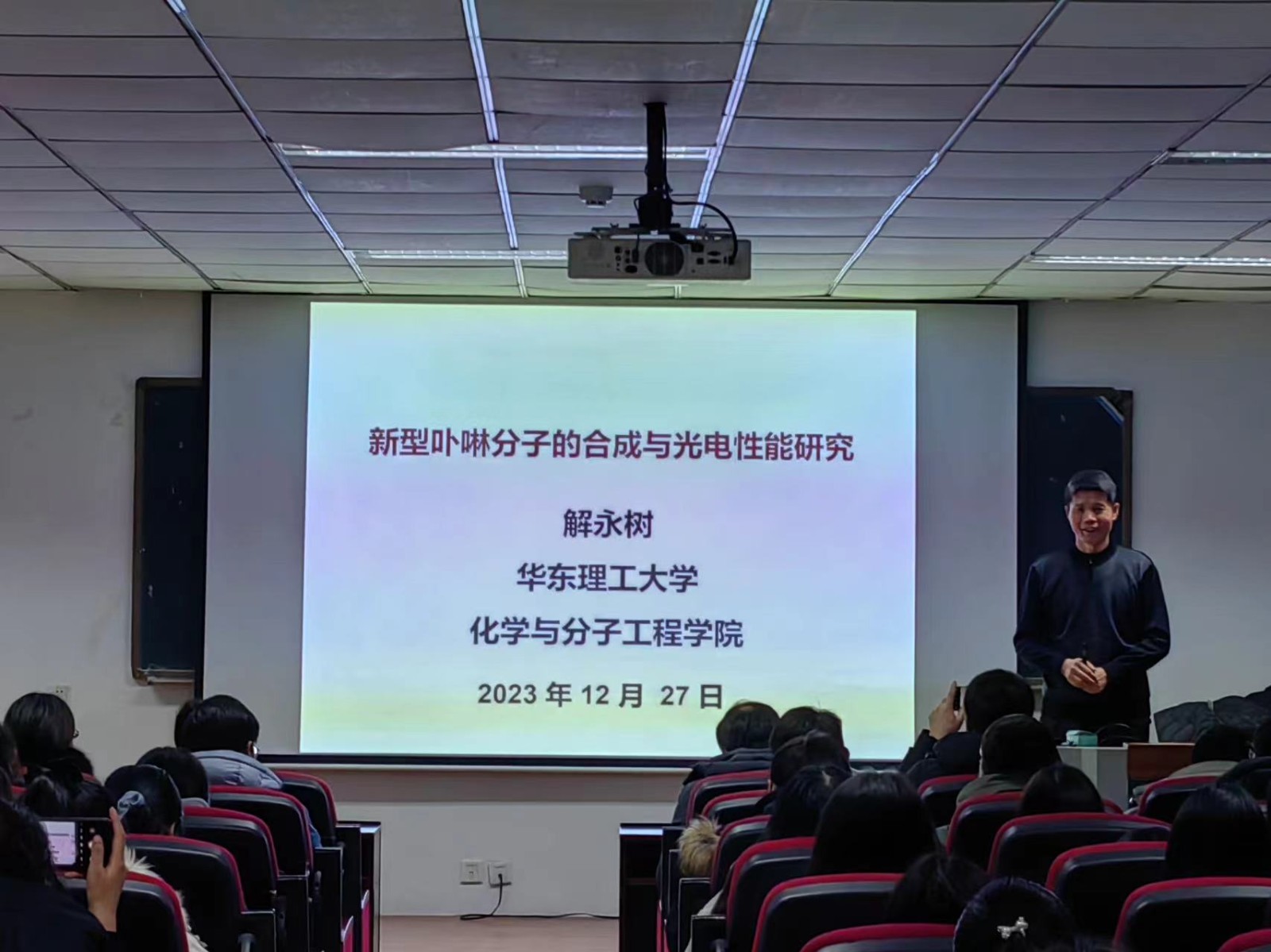 2023年12月28日,应EBpay官网 邀请,华东理工大学化学与分子工程EBpay 解永树教授为EBpay 师生做了题为“新型卟啉与异卟啉的合成与光电性能研究”的学术报告。报告由副院长韩占刚主持,EBpay 相关教师与研究生参加了本次学术讲座。