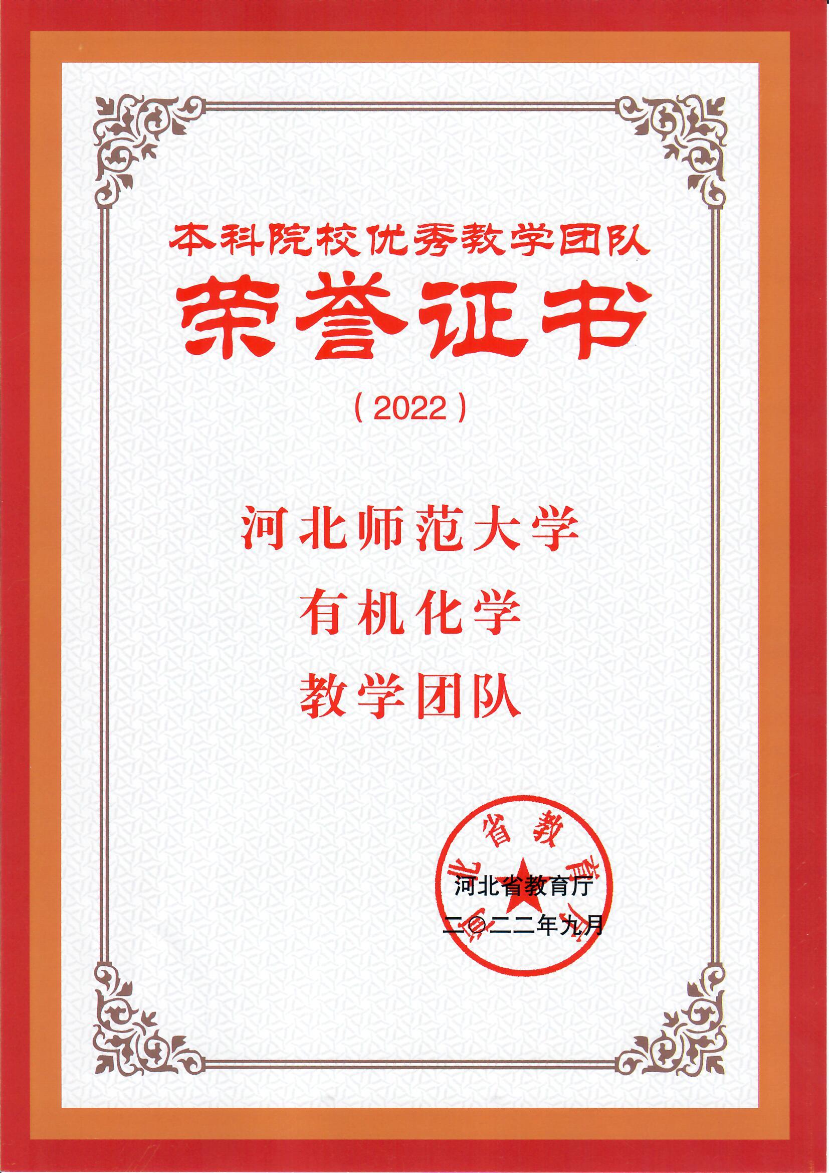 EBpay官网 有机化学教学团队获评本科院校优秀教学团队
